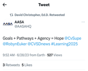 Here is the Retweet that Dr. Christopher sent out from the AASA conference last month: